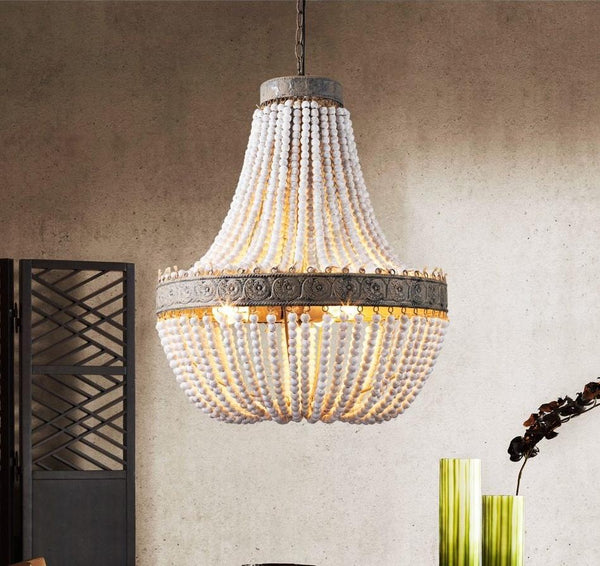 BeadLustre Vintage Kronleuchter aus Holzperlen | Runde Pendelleuchte | Eleganz für Zuhause