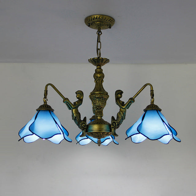 LuminoBloom Vintage Tiffany Kronleuchter | 3/5 Lichter | Glas & Eisen | Stilvolle Beleuchtung