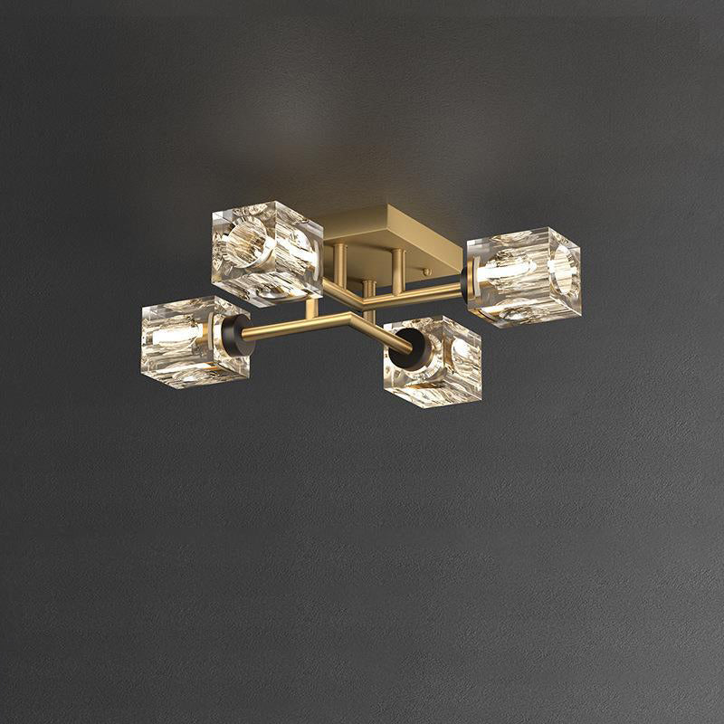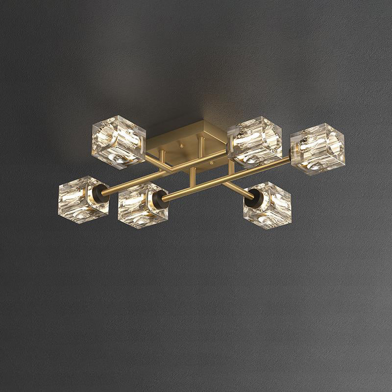 LustreVance Luxus Kupfer Kristall Deckenleuchte | Rechteckig | 4/6/8 Licht | Für Wohnzimmer - 4 / Gold / 220V-240V is backordered and will ship as soon as it is back in stock.