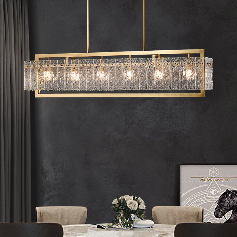 LuxaVine Modernes Luxus Kronleuchter Design | Runde und Rechteckige Glas-Messinglampe | 5/6/8/10 Lichter | Esszimmer Inselbeleuchtung