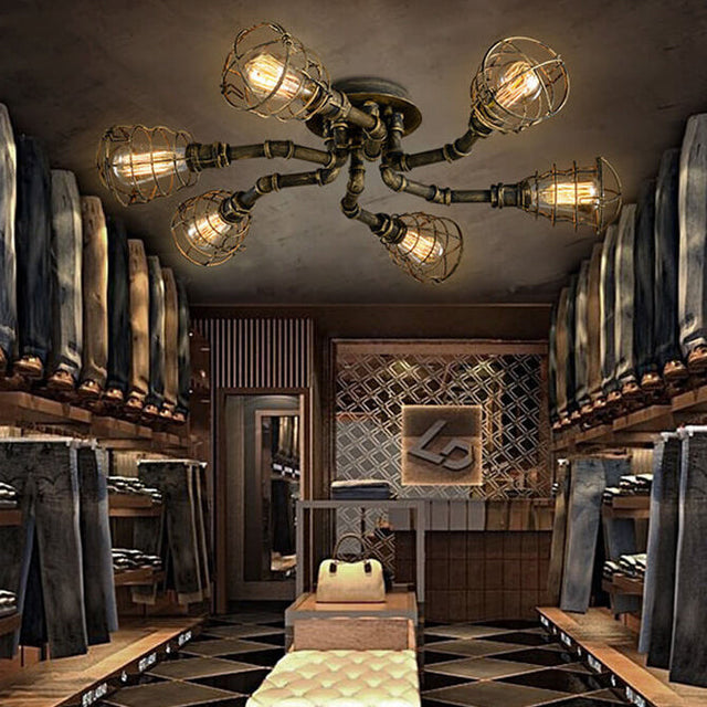 RustiBeam Industrielle Vintage Deckenleuchte | 4/6/8 Lichter | Wasserrohr-Design aus Eisen