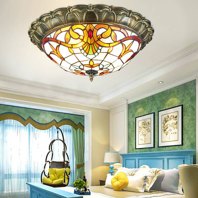 Tiffanara Runde LED Deckenleuchte | Buntglasdesign | Vintage-Stil | Warmes & Weißes Licht - Klein / Warmweiß (3000K) / 220V-240V is backordered and will ship as soon as it is back in stock.