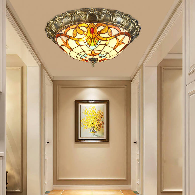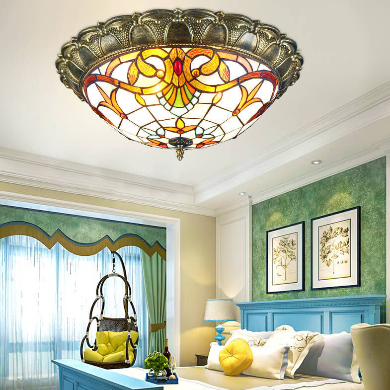 Tiffanara Runde LED Deckenleuchte | Buntglasdesign | Vintage-Stil | Warmes & Weißes Licht