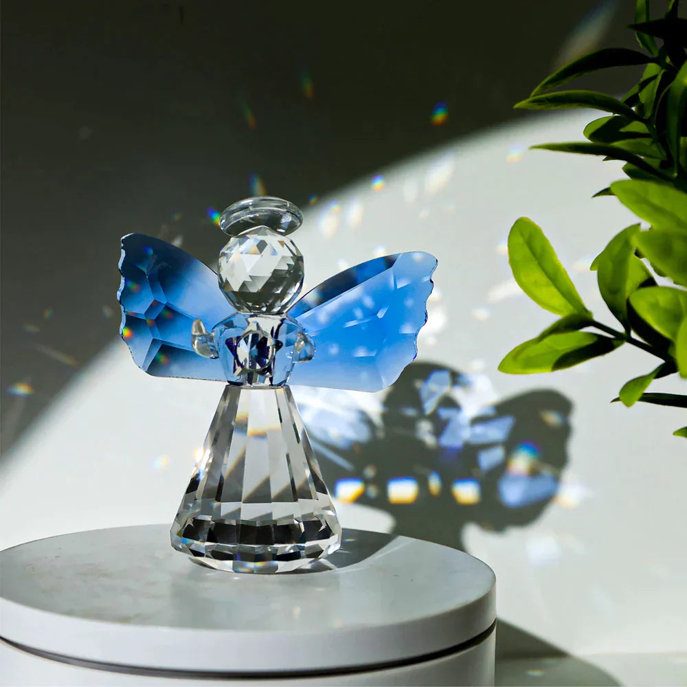 AngelGlow Kristall Engel Figur | Handgemacht | Blaue Flügel | Glas Skulptur | Deko für Zuhause