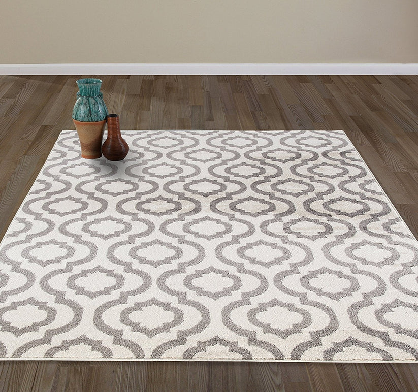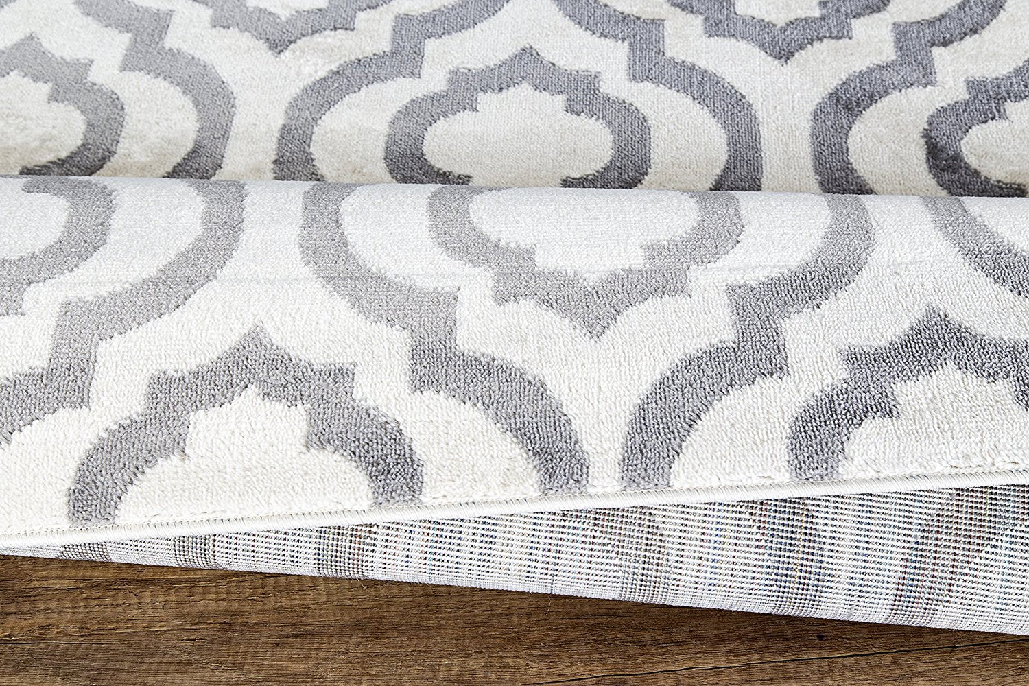 IvoryGrid Teppich | Spalier-Design in Elfenbein & Grau | Pflegeleicht & Modern | Perfekt für Wohnzimmer & Flur