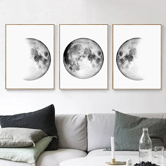 LunaNova Wandbild | Mondphasen Leinwand | Stilvolle Wanddekoration | Astronomisches Kunstwerk
