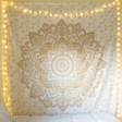 MandalaLuxe Goldener Wandteppich | Spirituelle Wanddeko | Boho & Meditationsstil | Hochwertiger Druck