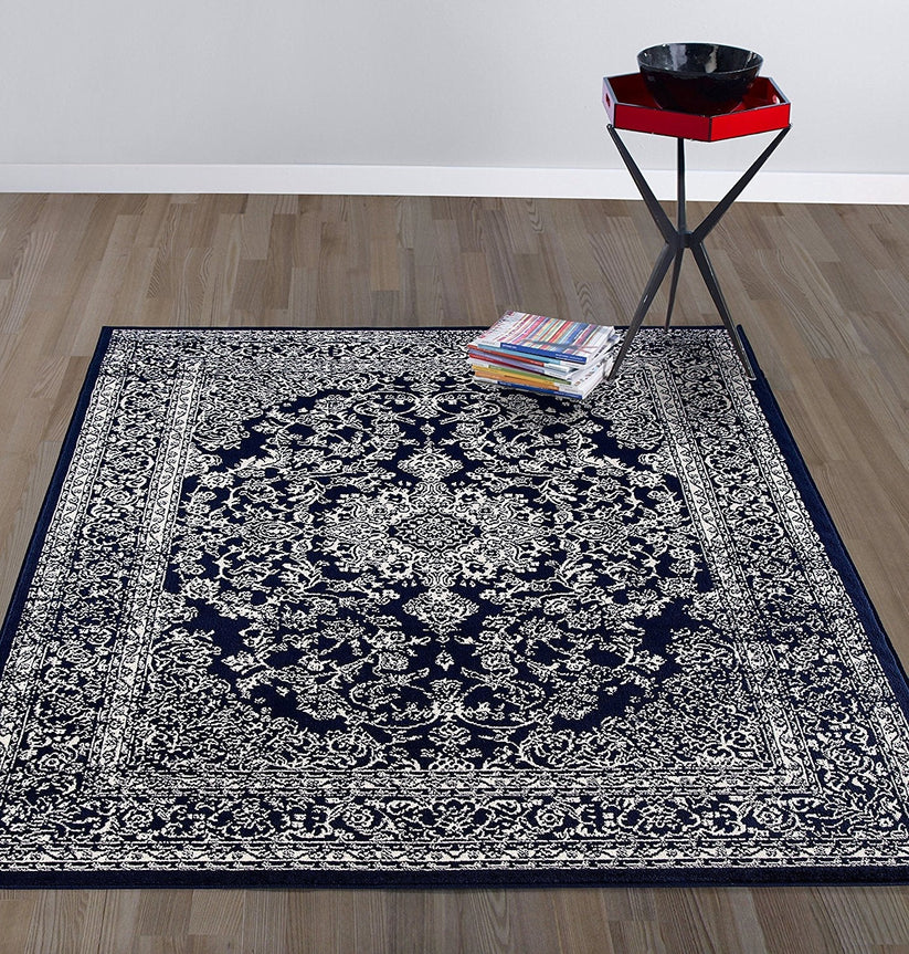 MarineCharm Oriental Teppich | Navy & Elfenbein | Pflegeleicht & Weich | Wohnzimmer & Flur