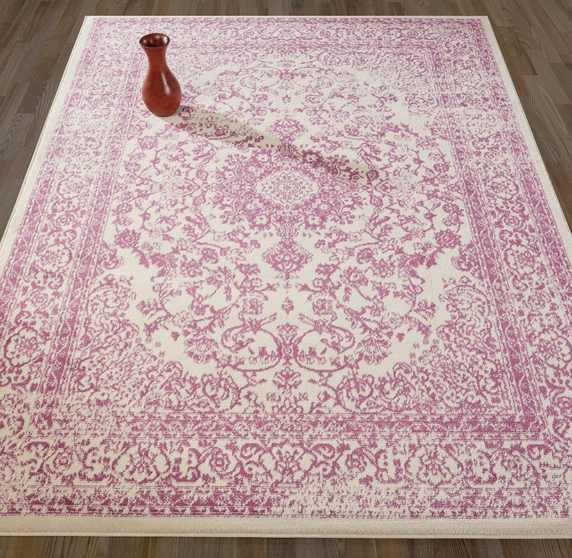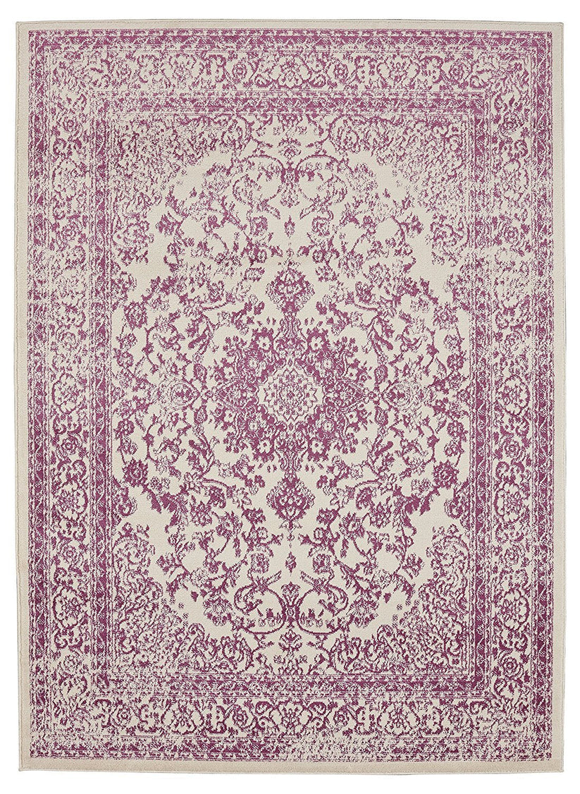 • Orientalisches Design: Ein kunstvoller Läufer in Elfenbein und Lila für einen luxuriösen Look.