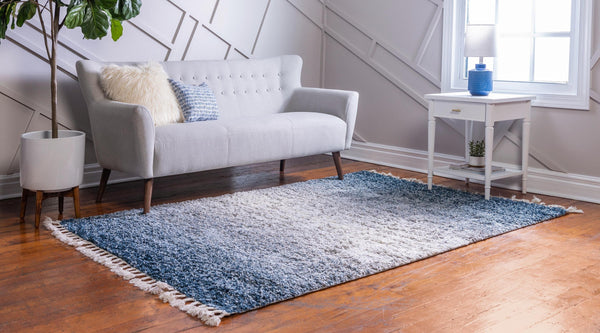 Velviona Gradient Shaggy Teppich | Weicher Hochflorteppich | Modernes Farbverlauf-Design - Blau & Elfenbein / Rechteck / Klein - 66 x 91 cm is backordered and will ship as soon as it is back in stock.