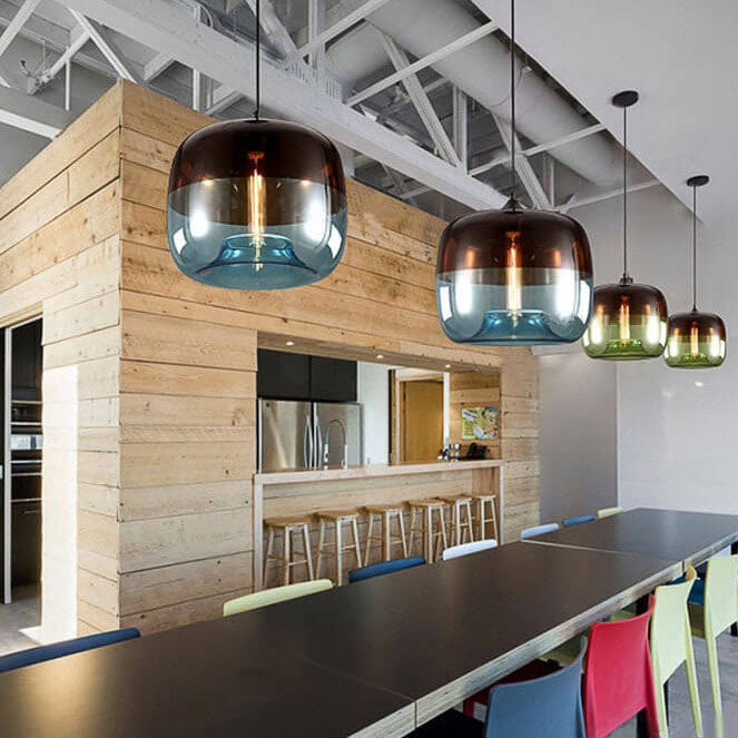 Die ColorSphere Retro Design Pendelleuchte bringt mit ihrem bunten Glas und dem Vintage-Charme Leben in jedes Zimmer. Diese Pendelleuchte ist perfekt geeignet, um Ihre Räume zu verschönern und für eine angenehme Beleuchtung zu sorgen. Die einzigartige, runde Drum-Form aus hochwertigem Glas schafft in Ihrem Zuhause eine lebendige Atmosphäre. Durch die E27 Fassung ist sie mit LED-Lampen, Energiesparlampen oder Halogenlampen kompatibel. Die Pendelleuchte ist in den Farben Blau und Grün erhältlich und eignet sich ideal für Wohnzimmer, Esszimmer, Küchen oder Flure. Setzen Sie einen modernen Akzent in Ihrem Zuhause mit dieser dekorativen Leuchte.