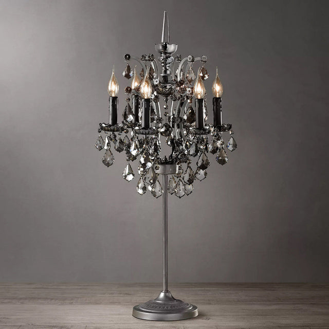 CrystalCrown Vintage Tischlampe mit Kandelaber-Design | Kristallverzierung | Eisenfuß | Deko für Schlafzimmer & Wohnzimmer
