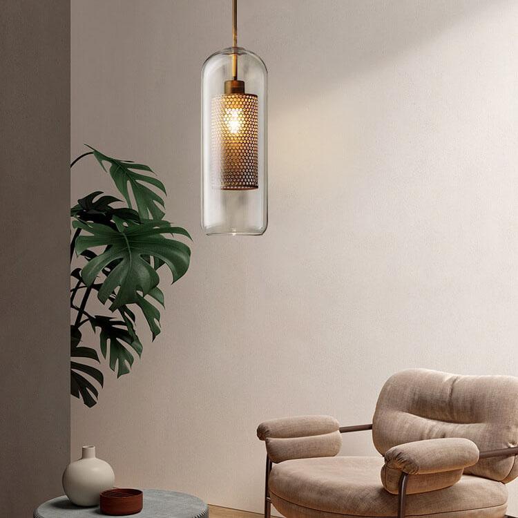CyluGlow Pendelleuchte | Zylindrisches Klarglas-Design | 1-flammige Hängeleuchte | Minimalistischer Stil