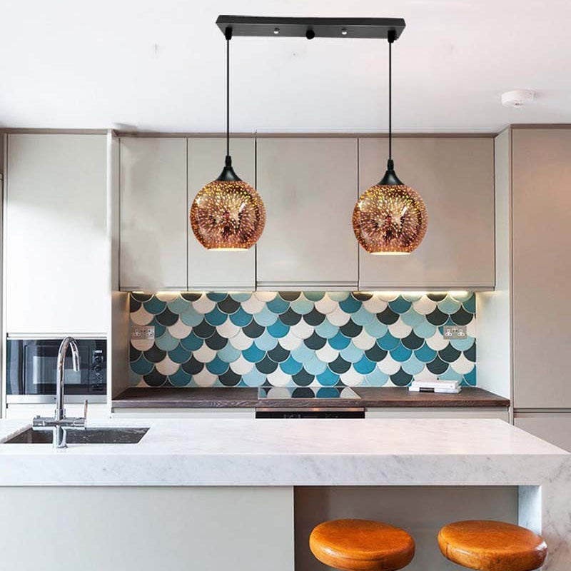 ElysianSpark 3D Creative LED Kronleuchter | 2/3 Lichter | Feuerwerksglas-Dome | Modernes Design | Stimmungslicht für Zuhause