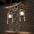 RustiLume Industrial Kronleuchter | Vintage Holz & Metall | 2-Licht Inselleuchte