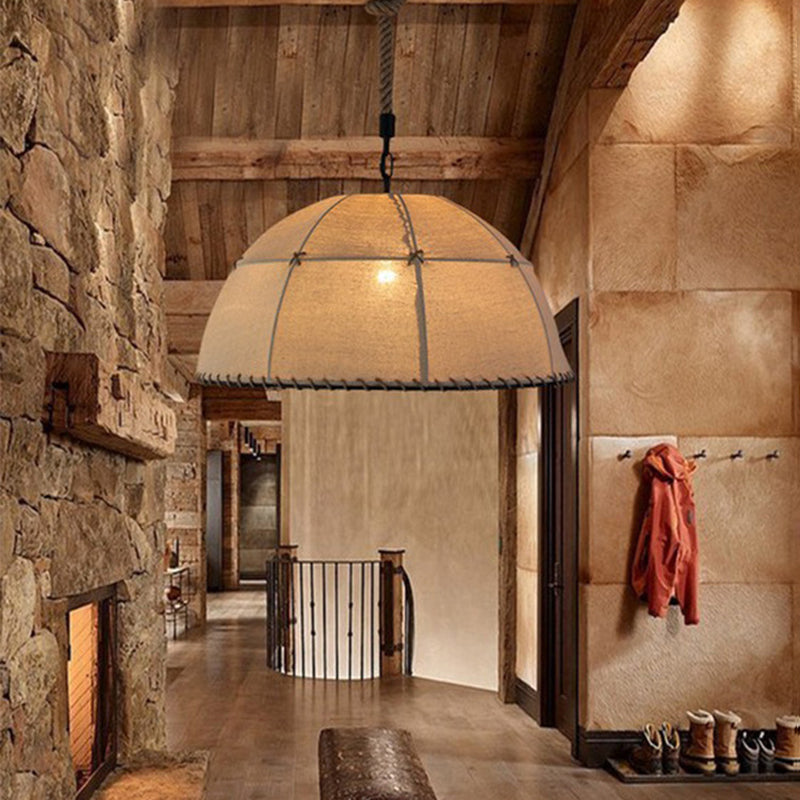 RustiShade Hängelampe | Halbrunder Stoffschirm | Rustikales Design | Für Esszimmer & Küche | In 3 Größen erhältlich