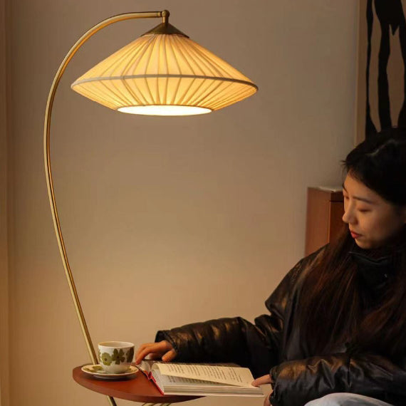 VintaCone Stehleuchte | Vintage Design | Runder Kegel-Tisch | Stoff & Eisen | 1-Licht | Eleganz für Schlafzimmer