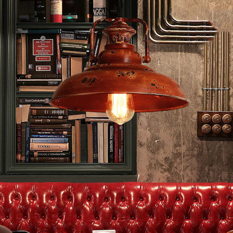 RusticaGlow Retro Pendelleuchte | Rostrote Metall-Kuppel | 1-flammig | Vintage Deckenleuchte