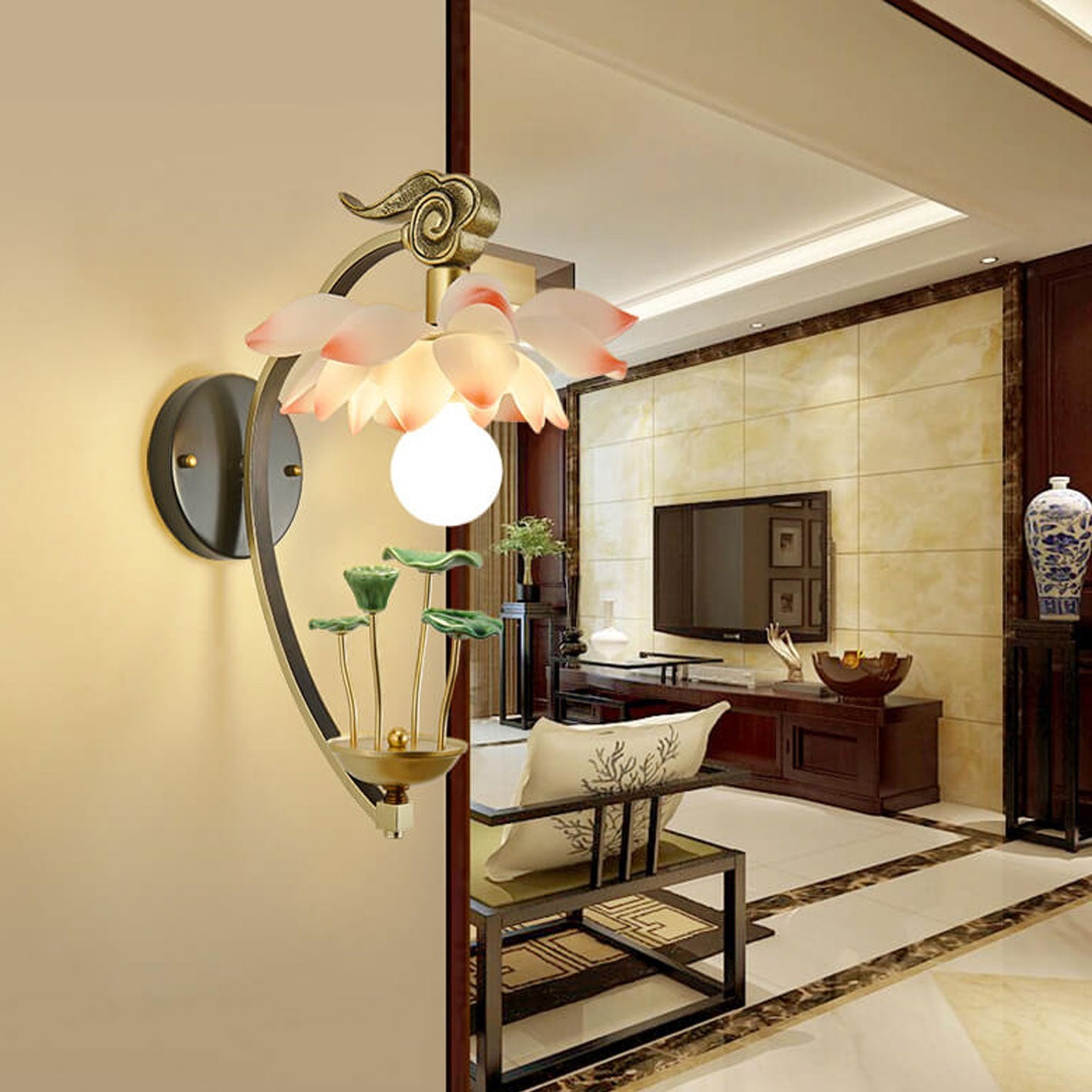 Die LotuLume Wandlampe bringt zeitlose Eleganz und asiatisch inspiriertes Design in Ihre Wohnräume. Die Kombination aus hochwertiger Keramik und Harz verleiht der Lampe eine kunstvolle Optik, die sofort ins Auge fällt. Mit ihrer sanften Beleuchtung schafft sie eine warme, einladende Atmosphäre und ist ideal für Schlafzimmer, Wohnzimmer oder Flure. Erhältlich in zwei stilvollen Plattendesigns – rund oder rechteckig – fügt sie sich harmonisch in jedes Raumkonzept ein.