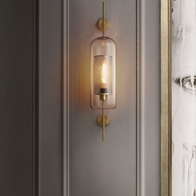 Lumivault Industrial Wandlampe | Zylindrischer Glasschirm | Eisenrahmen | Deko für Schlafzimmer & Wohnräume - Klein / Gold / 220V-240V is backordered and will ship as soon as it is back in stock.
