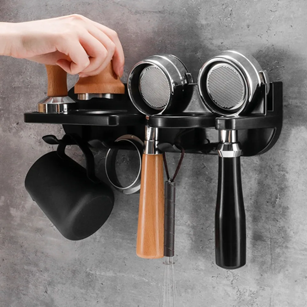 Bringen Sie Ordnung in Ihre Kaffeestation mit der BrewOrganize Wandhalterung für Kaffee-Set. Dieses stilvolle Aufbewahrungsregal wurde speziell für Barista-Zubehör entwickelt und bietet Platz für Tamper, Siebträger und andere Küchenutensilien. Mit seiner kompakten Größe und modernen Optik ist der BrewOrganize Organizer ideal für Kaffeeliebhaber, die Wert auf Funktionalität und Design legen. Perfekt für die Nutzung zu Hause oder im Büro, sorgt der BrewOrganize Organizer dafür, dass Ihr Kaffeezubehör immer griffbereit ist. Dank der robusten Materialien und einfachen Wandmontage bleibt Ihre Kaffeestation ordentlich und organisiert.