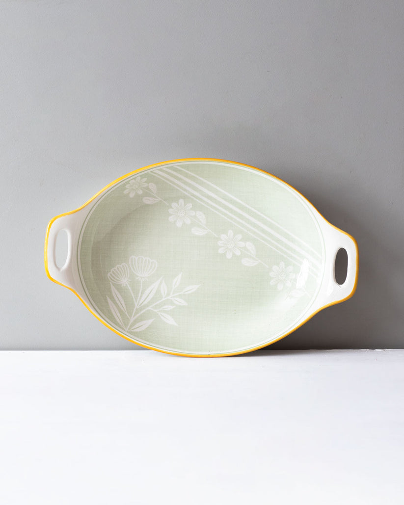 Die Florenza Servierplatte kombiniert elegante Ästhetik mit praktischer Funktionalität. Das zauberhafte Tulpen-Design und die hochwertige Keramik machen sie zum perfekten Begleiter für jedes Tischarrangement. Egal, ob Sie Kuchen, Obst, Snacks oder Canapés servieren – diese Platte verleiht Ihren Speisen eine ansprechende Präsentation. Robust und langlebig, eignet sie sich ideal für den täglichen Gebrauch oder besondere Anlässe. Dank ihrer glatten Oberfläche ist die Florenza Servierplatte leicht zu reinigen und eine Bereicherung für jede Küche oder jeden Esstisch.