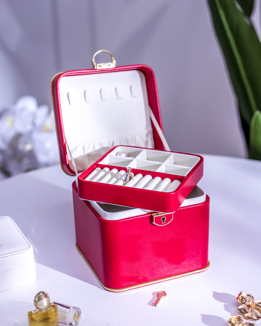 Travelluxe Reise Schmuckkästchen | Kompakte Schmuckaufbewahrung | Hochwertiges Design | Rot