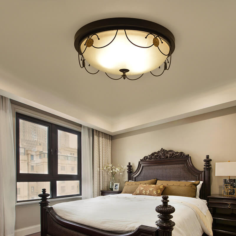 Die Vintora Luxe Deckenleuchte bringt zeitlosen Charme und ein Hauch von Nostalgie in Ihre Wohnräume. Inspiriert von europäischem Vintage-Stil, kombiniert sie eine runde Schalenform mit hochwertiger Verarbeitung. Ihre 3/4-flammige Beleuchtung bietet ein weiches, gleichmäßiges Licht, das perfekt für Wohnzimmer, Essbereiche oder Schlafzimmer geeignet ist. Erhältlich in zwei Größen und zwei Designs, fügt sich diese elegante Deckenlampe harmonisch in jeden Raum ein.